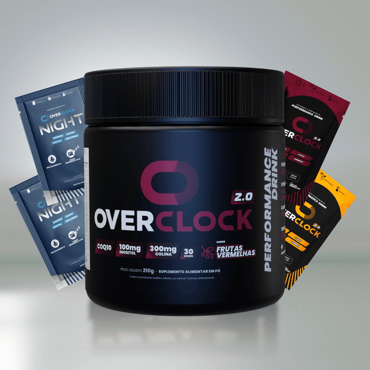 Overclock 2.0 é o aliado ideal para elevar sua produtividade e performance diária. Com uma fórmula exclusiva de ingredientes naturais, como colina, cafeína, Coenzima Q10, polifenóis, tirosina, inositol e vitaminas A, C, D, E e do complexo B, promove foco prolongado, concentração contínua e energia estável, sem causar agitação. Deve ser consumido 15 minutos antes de trabalho, estudos ou esportes, até 3 vezes ao dia. Seguro e natural, seu uso recorrente contribui para memória, imunidade e saúde celular.