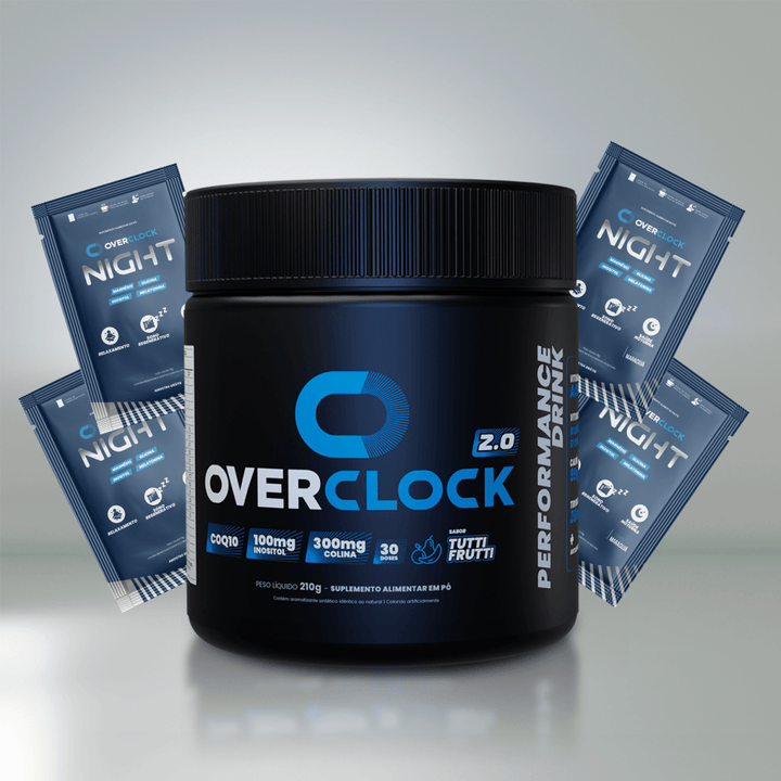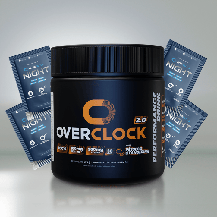 Overclock 2.0 é o aliado ideal para elevar sua produtividade e performance diária. Com uma fórmula exclusiva de ingredientes naturais, como colina, cafeína, Coenzima Q10, polifenóis, tirosina, inositol e vitaminas A, C, D, E e do complexo B, promove foco prolongado, concentração contínua e energia estável, sem causar agitação. Deve ser consumido 15 minutos antes de trabalho, estudos ou esportes, até 3 vezes ao dia. Seguro e natural, seu uso recorrente contribui para memória, imunidade e saúde celular.